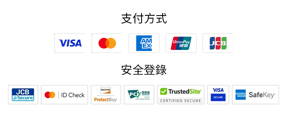 信用卡支付:支持多種國際及國內主流信用卡支付,包括 American Express(美國運通卡)、JCB 卡、Mastercard(萬事達卡)、China UnionPay(銀聯卡)、VISA 卡,支付流程簡單便捷,實時到賬,確保訂單快速確認。